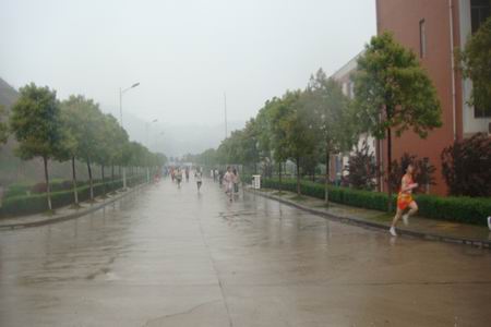 天空中飘着细雨,刮着冷风,使比赛徒增了些许难度,却也对运动员身体素质提出了考验。风雨中,运动员士气依然十足,你追我赶,奋勇向前地奔跑。他们承载着“更快,更好,更强”的竞赛理念,用自己的行动对“ 踏上跑道,是一种选择;离开起点,是一种追求;驰骋赛场,是一种骄傲;执着坚持,是一种胜利。”的信念作了精辟的诠释。