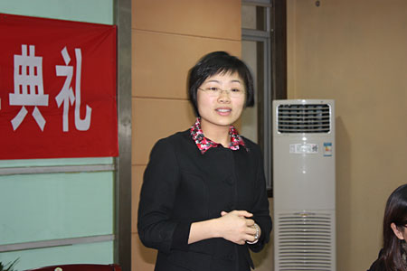 博世公司TGA项目部部长王兰桂在主持总结开学典礼时表达了对博世班学生的期望,希望他们珍惜机会,先学会做人再学会做事。