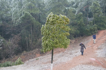 因受寒流影响,长沙1月5日温度直降11摄氏度。1月6日凌晨,长沙大多数地方都出现冰冻现象,路边树木集体穿上冰挂外套,让冬日气氛备显浓郁。而树挂美景也将若大的校园妆点得分外妖娆。