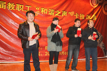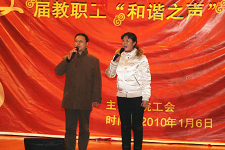 1月6日晚,由我院工会主办的第二届教职工“和谐之声”卡拉OK大赛在大学生活动中心举行。院长刘建湘,副院长刘继平、院工会主席张志勇、党委副书记周立华等领导莅临本次比赛。