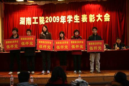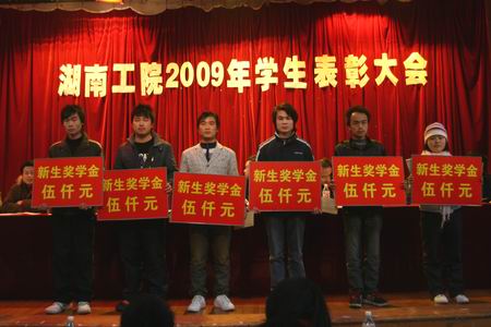 大会对2008-2009年度国家奖助学金和关爱助学金、院级三好学生、优秀学生干部、先进班集体等进行了表彰。黄桃丽、李霞等10位同学获得国家奖学金;龙艳、陈波、何毅等828名同学被评为“院级三好学生”;腾丽、谭维、蒋鹏等651名同学被评为“院级优秀学生干部”;电会S2008-2班等27个班级被评为“院级优秀班集体”。