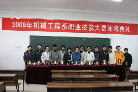 12月8日下午,“机械工程系2009年技能竞赛闭幕典礼”在2413室举行,这标志着历时三周的技能竞赛圆满结束。学院副院长刘继平、教务处处长彭跃湘应邀出席了闭幕典礼。机械工程系党总支书记陈方、系主任皮智谋、副主任申奇志等领导参加了闭幕典礼。机械工程系主任皮智谋主持闭幕式。