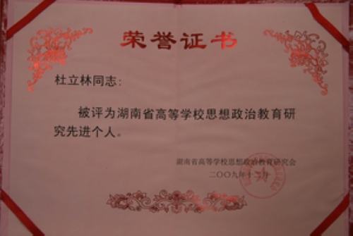 大会经专家评审,并报中共湖南省委教育工作委员会批准,我院思想政治教育部荣获 “湖南省高等学校思想政治教育研究先进单位”,商贸旅游系杜立林老师荣获“湖南省2009年高等学校思想政治教育研究先进个人”。