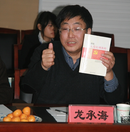 龙承海代表学院向评估组专家汇报了我院党校工作开展情况。他说,我院党校依托学院的发展,进行了一系列改革。在设施建设方面,安排了充足的资金和多处教学场地开展工作;在师资建设方面,着重提高党校师资队伍的整体水平,聘请了大多数在思政教育一线的“双师型”教师;在进入党校学习的人员方面,坚持以学生为主干的原则。并立足把我院党校建设成为学习型的党校,进而发挥党校育人的作用。龙承海还结合我院党校开展的具体工作汇报了我院办好党校的四点体会:以学生为骨干,在培训方面实行多样化教学;严格把好党校学员的质量关;重视党校培养党员后备力量的作用,营造向党组织靠拢的良好风气;加强党校师资队伍建设,坚持党校“规范化、正规化、经常化、制度化”的四化原则,根据形势需要将党校的各种资源进行整合,让各种教育途径形成交叉,促进我院党校工作的健康发展。
