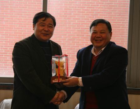 会上,刘建湘院长首先致辞,对张子厚院长一行的到来表示热烈欢迎,并介绍了学院的发展历史和我院示范校建设情况。张子厚院长对我院取得的成绩表示祝贺,并介绍了上海工程技术大学高等职业技术学院的发展情况。随后,针对国家示范性高职学院的建设思路,数控、模具、电气自动化等专业建设方案、教学管理和教学改革的难点问题,双方进行了深入探讨。大家一致认为,高职教育要重视校企合作、产学结合,更提倡校际合作,互相交流经验。张子厚院长还代表上海工程技术大学高等职业技术学院给我院赠送了纪念品。