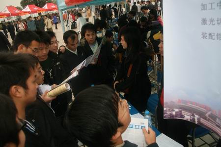 我院毕业生得到了招聘单位的认可。远大空调上周已来学院招聘毕业生30多名,这次又趁供需见面会大摆展台,以寻找更多的合适人才。宁波一家招聘负责人称,在我院2009届毕业生招聘会中,他们由于参会时间较晚,没有招到合适的学生,所以今年特地赶在湖南省2010年机械装备制造类人才供需见面会上来“抢”优秀的专业毕业生。而博世集团则直接来校招聘2009级新生组建“博世班”。