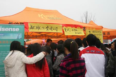 招聘会场内,中联重科、山河智能、远大空调、海信集团、博世集团、苏宁电器、湘计算机等与我院有多年人才合作关系的企业单位,得到我院毕业生的青睐,招聘展位前排起了长龙。