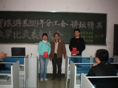 为配合学院示范性高职院校建设工作,规范教职工教育教学各个环节的程序与要求,提升教职工的劳动积极性与创造性,商贸旅游系(含体育艺术部、思想政治部)分工会在全体教职工中开展了“讲坛精英”教学比武劳动竞赛活动。