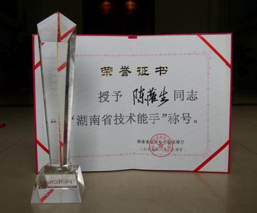 陈灌生荣获数控铣操作第一名奖杯与“湖南省技术能手”证书