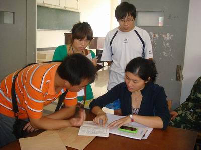 在图书馆的前面,我院各系部早已设好了自己专业咨询点,为新生和家长们咨询问题做好了充分的准备。在图书馆的阅览室里,同样设了各系的报道处,以供新生们井然有序的报道。