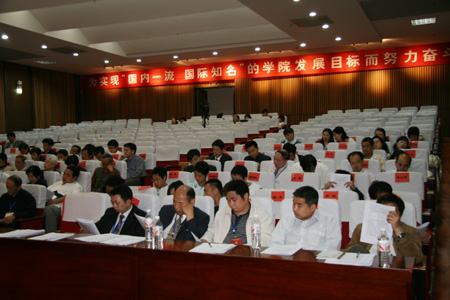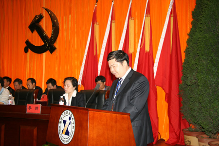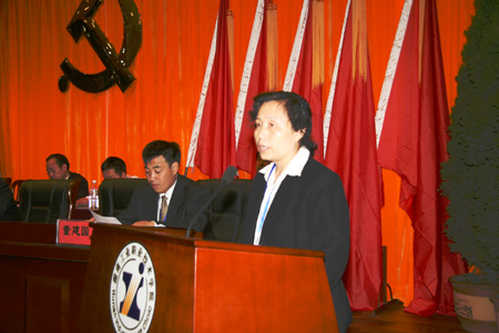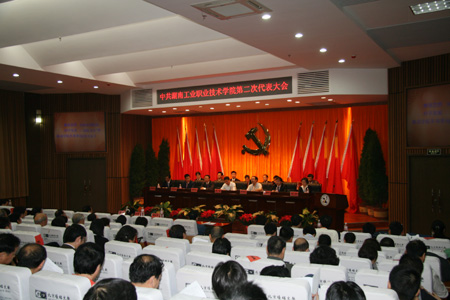 廖洪元同志代表第一届党委会向大会作了题为《解放思想 改革创新 科学发展 建设示范 为实现“国内一流 国际知名”的学院发展目标而努力奋斗》的工作报告。报告共分三个部分。报告的第一部分回顾和总结五年来党委工作所取得的成绩,主要是:坚持科学发展观,党建和思想政治工作成绩斐然;准确定位,正确决策,学院实现大发展;团结奋进,民心归一,和谐校园建设开创新局面。五年来的工作积累了宝贵的经验:第一,坚持发挥党委的核心领导作用,是学院各项事业不断前进的根本保证;第二,坚持科学发展观,把发展作为解决一切矛盾和困难的根本,是学院各项事业不断前进的关键所在;第三,坚持解放思想和改革创新,是学院各项事业不断前进的不竭动力;第四,坚持弘扬工院精神,紧紧依靠广大师生员工,是学院各项事业不断前进的力量源泉。报告的第二部分深刻分析了学院面临的形势。今后四年,是学院学习实践科学发展观、大力提升核心竞争力的四年,也学院是承上启下、加快发展的四年。当前,国际金融危机进一步深化,国内经济形势也出现了不少新情况新问题。另外,虽然我们的改革发展取得了显著成绩,但和很多国家示范性高职学院相比,我们还缺乏强劲的竞争力,这些,都让我们压力更大,责任更重。报告指出学院今后四年的总体目标是:高举中国特色社会主义伟大旗帜,全面贯彻党的十七大精神,深入学习实践科学发展观,围绕国家示范性高职院校建设,以“提升内涵、强化特色”为主旨,以队伍建设为抓手,进一步深化工学结合人才培养模式改革,进一步提升学院的核心竞争力,加强和创新党的建设,努力将学院建设成为“国内一流、国际知名”的国家示范性高职学院。最后,报告明确要求,要以改革创新的精神加强和改进党建和思想政治工作。一是加强思想建设,提高党员干部思想政治素质;二是加强领导班子和干部队伍建设,提高领导学院科学发展的能力;三是加强组织建设,增强基层党组织的战斗堡垒作用和党员的先锋模范作用;四是加强民主建设,促进学院民主管理;五是加强党风廉政建设,完善惩防结合的反腐倡廉长效机制;六是加强和改进思想政治工作,为学院发展营造良好氛围。
