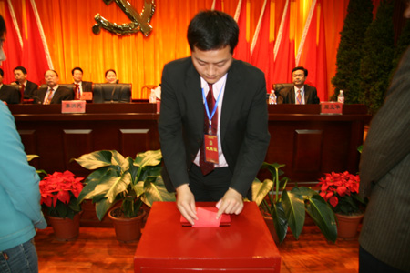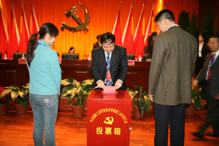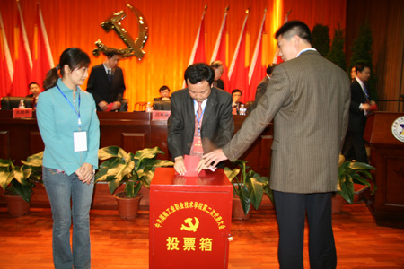 下午1:30,党代会二次会议举行选举和通过大会决议