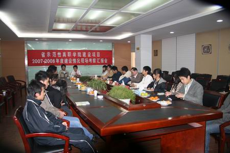 12月18日,以湖南永州职业技术学院原党委书记刘平娥教授为组长,湖南大众传媒职院副院长方建超、娄底职业技术学院院长刘演林教授、湖南化工职业技术学院院长张孝理教授、湖南交通职业技术学院副院长孔七一教授、湖南省科教院职成所陈波涌主任一行六人组成的“十一五”省级示范性高等职业院校建设项目专家组莅临我院,对我院2008年度省级示范性高职院校建设项目建设政策环境,年度建设经费投入及设施设备改善情况,项目建设效果等进行现场考察。
