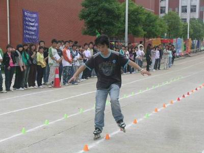 团委书记段可宣布第二届社团艺术节开幕。随后在快节奏的乐声中拉开了“风火轮”旱冰赛,选手们精湛的技术,赢得了观众们阵阵掌声、喝彩声,现场沉浸在一片热闹、活跃的气氛中。
