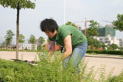 炎炎烈日考验着每个人的耐力,汗水湿透了他们的衣襟,模湖了他们的视线,但他们没有停止脚步,用手拭去眼角的汗水与尘土,继续低头苦干,如一道美丽的风景线定格在校园中。