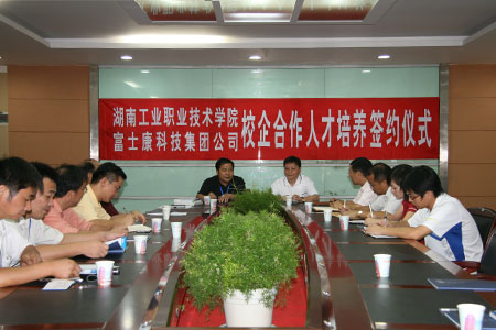 刘建湘院长代表学院与富士康副总经理廖万城签订联合办学协议