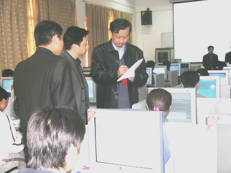 11月22日下午4点,在学院二号教学楼2407号教室进行了评估工作中的计算机基本技能测试。参加测评的学生是由评估专家从学院随机抽取的15名各专业学生和学院推荐的15名学生组成,分别完成各自从评估专家组提供的试题库中抽取的测试题,评估组专家孟庆国、王江清全程监考。我院学生依靠自己平日认真扎实的学习,较好地完成了100分钟的测试。