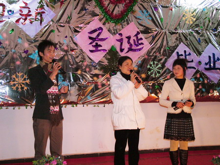 12月26日晚7:00,由商贸旅游系团总支主办的"迎新 圣诞 毕业"主题晚会在1102教室隆重举行。商贸旅游系党总支书记姚蓉、院团委副书记段可等老师观看了本场晚会。