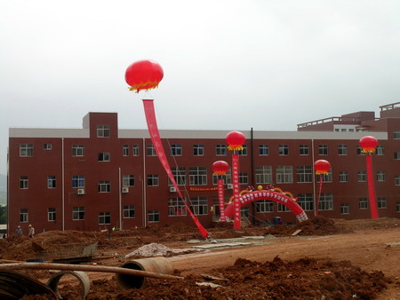 食堂前已飘起喜庆的汽球