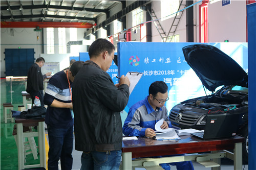 本网讯 10月27日—29日,长沙市2018年“十行状元、百优工匠”——汽车修理工职业技能竞赛决赛在我校汽车大楼举行,共有来自长沙11个区县的60余名汽车修理能手参赛。竞赛内容包括理论知识竞赛和技能操作竞赛两部分,重点考察选手对汽车发动机和车身电气系统故障的综合诊断、逻辑分析和排除能力,以及包括临场发挥、耐心体力、职业素养与操作安全等综合素质考察。