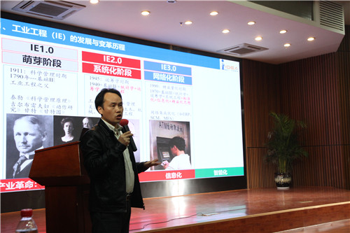 “工业工程是一门系统提高整体效率的学科,我们通过它想办法去解决问题、提高效率、降低成本。” 李晚华从智慧时代需要工业工程、智能制造的应用案例、人才需求与能力思考以及职业发展前景与规划这四个方面,向大家阐述了IE(Industrial Engineering工业工程)在工业发展中的重要地位。他认为IE是中国智能制造发展趋势的强大力量,并从IE的角度解释了智能工厂的制造理念,列举了IE在军事、工厂、交通、管理等行业中的广泛作用。结合视频资料,他向师生们生动地展示了工业工程发展与变革历程的四个阶段,从工业工程的概念、理解方式、特色以及在企业、社会和个人之间的价值上,让大家对工业工程有了一个全方位认识。