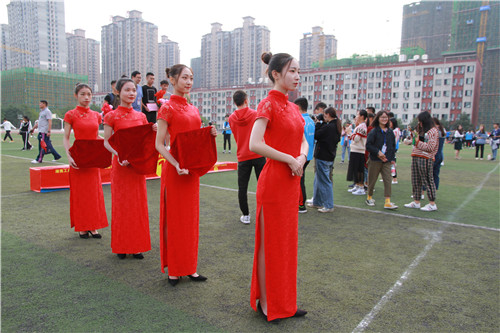 礼仪小姐用甜美的微笑给获奖选手传递成功的喜悦。商英2017-2班张雨佳自信地说道:“在日常生活中,我比较调皮,但当我穿上礼服后,就会不自觉变得端庄、优雅起来,这身旗袍就是我们的标志。”