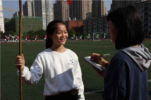 机电2018-1班的苏禧自从主动报名参加标语队以来,开始了长达半个多月的训练,有时周末都没有休息。他表示,在这个过程中认识了很多新朋友,提高了自己的沟通交往能力,懂得了集体荣誉感的重要性。他说,“能通过这种形式参与校运会,丰富大学生活,很开心。”