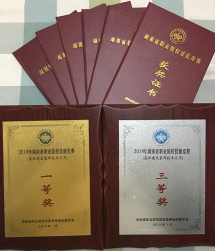 本网讯 12月22至24日,湖南省高职院校技能竞赛建筑装饰技术应用赛项比赛在湖南交通职业技术学院举行。由我校工业设计与艺术学院彭诚、王宏、刘郁兴、郑志凌担任指导老师,2016级室内设计专业雷青青、周怡欣、辜干中、欧阳慧雯、刘叶凡、刘磊六位同学组成两支代表队参加该项比赛,从36支参赛队伍中脱颖而出,取得了一等奖和三等奖的好成绩。