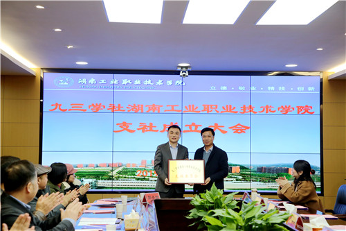 会上,王仁祥为支社授章、授牌;易杰代表支委作了表态发言;民革湖南省直属电子pg游戏平台下载支部委员石家泉教授、九三学社长沙矿山研究院支社主委尹彦波分别致贺词。会后,与会人员参观了我校智能制造实训中心、数控技术实训中心等教学实训场地。