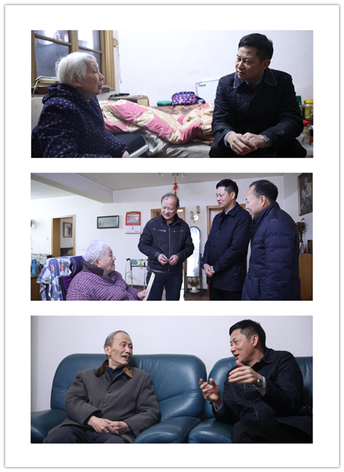 在老校区,向罗生、张志勇和退休干部陈中秋等人促膝交谈,了解他们的生活和身体状况,并简要介绍了学校工作与建设发展情况和下一步规划愿景,高度评价老同志在学校六十多年的发展进程中做出的积极贡献和始终心系学校建设发展的高尚情怀,代表学校感谢老同志多年来对学校的关心和支持,希望老同志在新的一年中一如既往地关心、支持学校的各项事业发展。陈中秋高兴地说道:“看到学校事业一天比一天好,我们老同志为学校的骄人业绩和创新成就感到无比高兴和自豪,希望学校在新的一年中,在校党委的坚强领导下,继续埋头实干、改革创新、奋勇争先,取得更大的成绩。”
