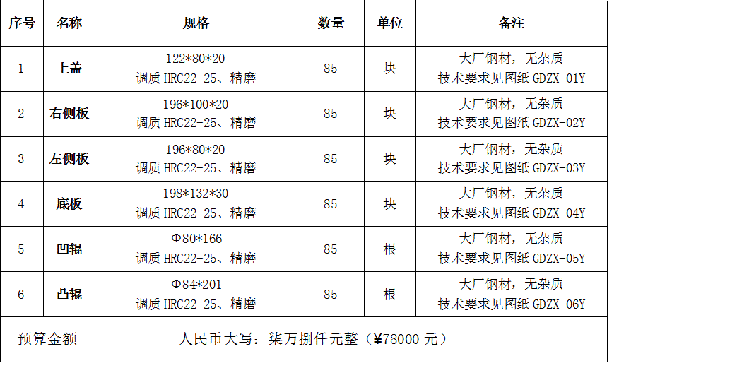 1、采购项目名称:2017年全国“复杂部件数控多轴联动加工技术”考件材料采购