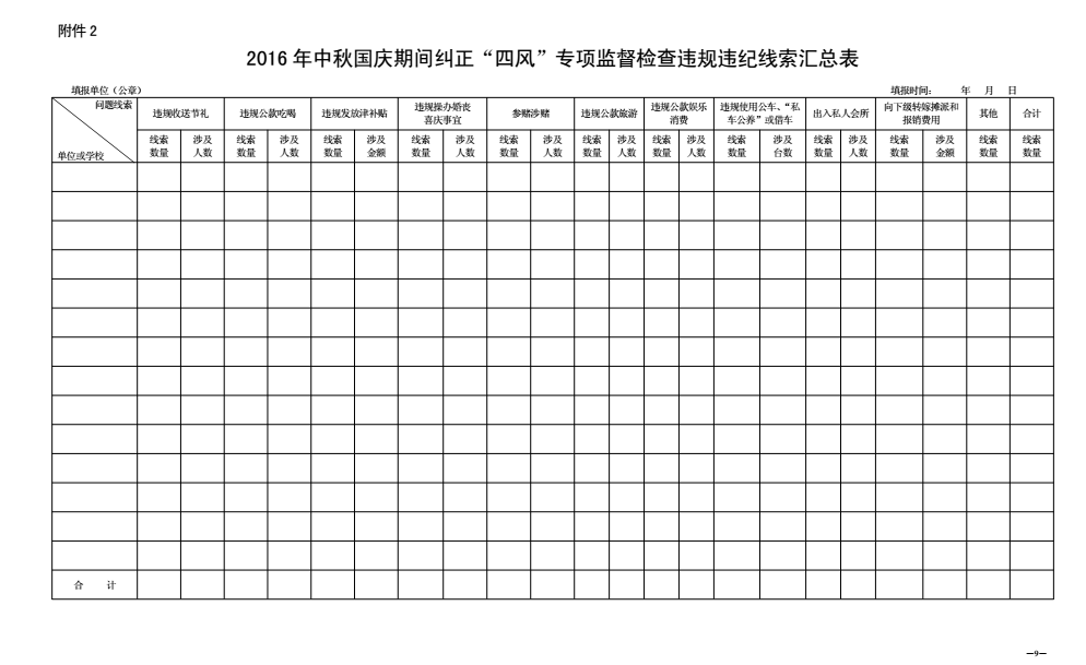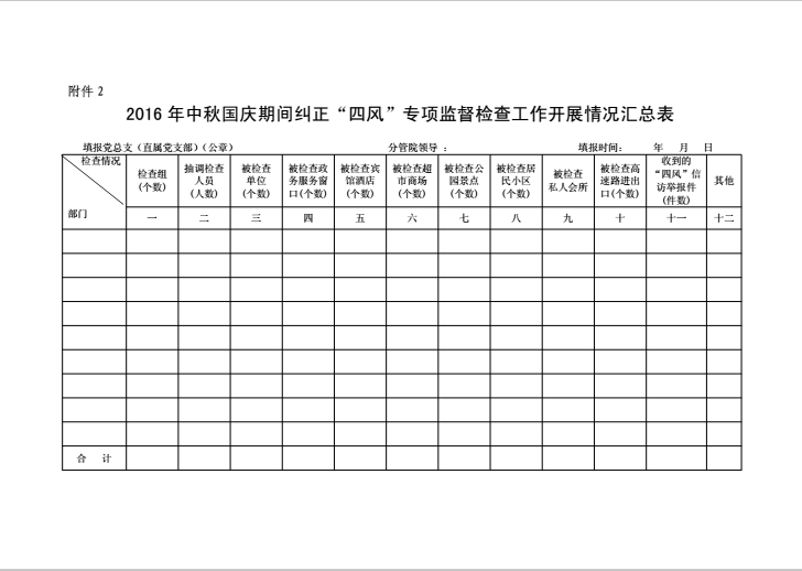 2. 2016年中秋国庆期间纠正“四风”专项监督检查工作开展情况汇总表