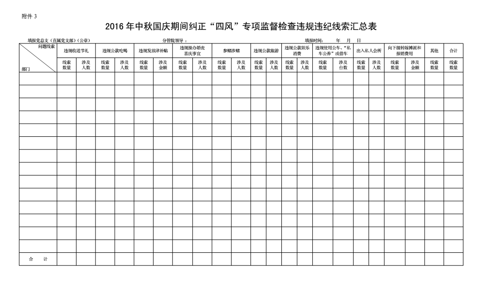 3. 2016年中秋国庆期间纠正“四风”专项监督检查违规违纪线索汇总表
