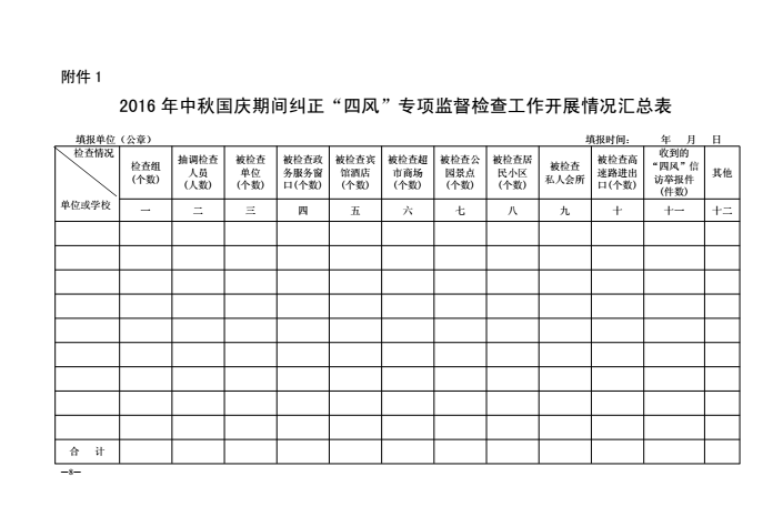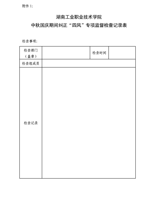 附件:1. 中秋国庆期间纠正“四风”专项监督检查记录表