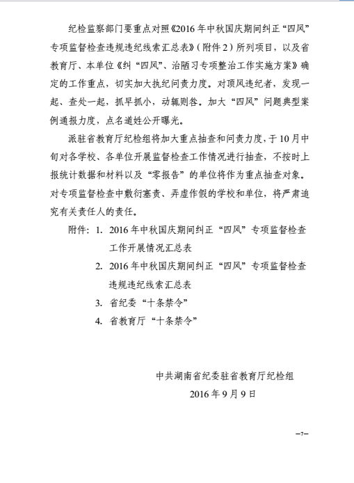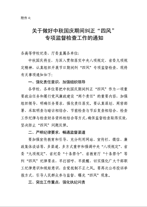 4.教育厅纪检组“关于做好中秋国庆期间纠正‘四风’专项监督检查工作的通知”