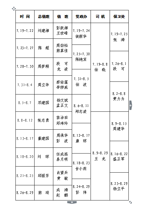 5、各系(院)、学生、保卫、后勤(医务、水电)等部门值班自行安排,并将本部门值班表在学院校园网本部门网页上挂网。