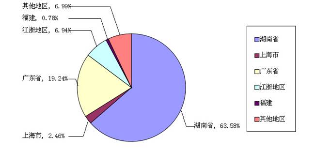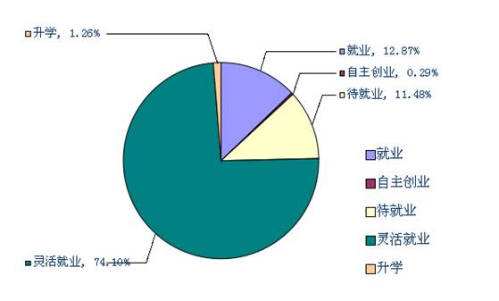 就业状况为就业及灵活就业的3864人中,在湖南省的就业人数为2455人,占总就业人数的63.58%,在广东省就业人数为743人,占总就业人数的19.24%;在上海就业的人数为95人,占就业总人数的2.46%;在江浙地区就业人数为268人,占总就业人数的6.94%;在福建省的就业人数为30人,占就业总人数的0.78%;其他地域就业的人数为270人,占就业总人数的6.99%。