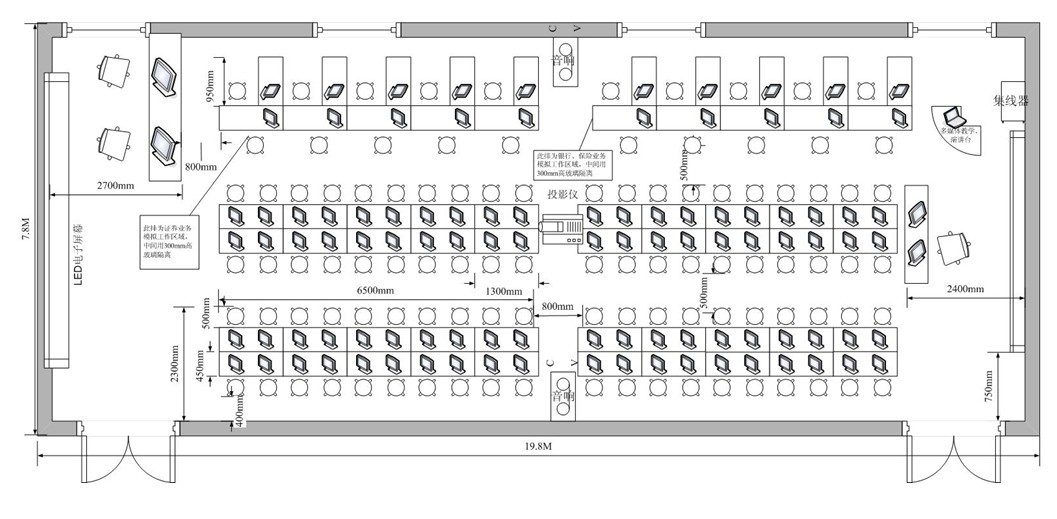 订制:全部使用高密度板,加固,侧加挡板,靠背加有机玻璃,2人桌1300*450*850MM |