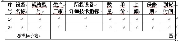 1、投标方应仔细阅读招标文件的所有内容,投标方报价时应在满足标书要求的基础上,将投标设备的品牌产地、规格型号、数量、单价、总价、供货时间、保修期限及售后服务等填写清楚。