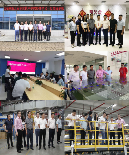 巡查组一行还与荣获“全国工人先锋号”称号的中共唯品会(肇庆)电子商务有限公司委员会第三党支部进行了党建工作交流。唯品会华南运营中心经理、支部书记李盼先生就“全国工人先锋号”建设成果、“发挥思想政治核心作用,引领企业改革发展”及最新党建工作新进展进行了经验分享。彭伟代表顶岗实习巡查组一行就信息工程学院学生党支部全国党建工作样板支部的创建经验与建设成果进行了交流,并就高职院校顶岗实习学生党员在顶岗实习期间教育管理与企业党建同仁展开探讨。
