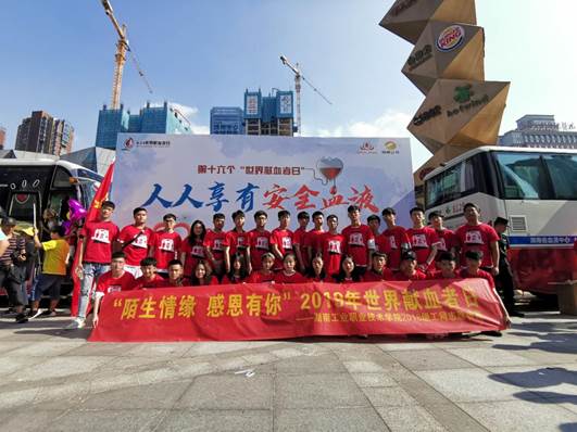 本网讯 6月14日是第16个“世界献血者日”。为进一步加强无偿献血科普知识的宣传,弘扬救死扶伤人道主义精神,由长沙市政府、湖南省卫生健康委举办的“陌生情缘,感恩有你”世界献血者日宣传活动在长沙市开福区富兴广场拉开帷幕。电气工程学院工业网络2018级1班的同学们在周敏老师带队下,积极参加此次志愿者活动,零距离了解采供血全过程,宣传无偿献血知识,鼓励更多人加入无偿献血。