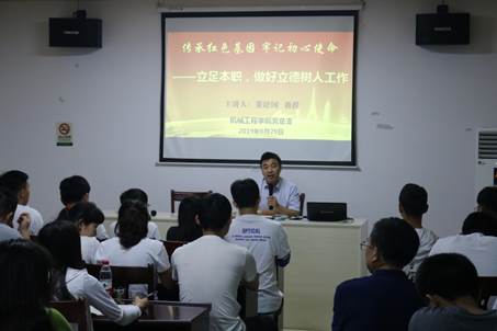 参观完杨开慧纪念馆和故居后,全体党员进行了专题党课学习,党委委员、副校长董建国以“传承红色基因,牢记使命担当”为主题,为全体党员上了一堂发人深省的党课。他指出,全体党员要以习近平新时代中国特色社会主义思想为引领,牢固树立坚定不移的理想信念,不断提高政治站位,增强“四个意识”,坚定“四个自信”,做到“两个维护”。教师党员要牢记新时代职业教育的使命和职责,为区域经济高质量发展培养更多大国工匠;学生党员要带头秉承“工匠精神”,立足自身专业,勇担时代大任。要充分发挥国际生源优势,增强文化交流,促进文化融合,动员全世界各国人民同心协力构建人类命运共同体。