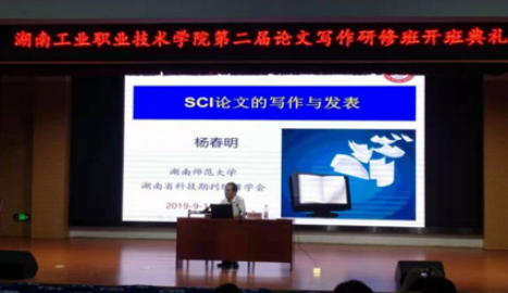 培训第一课由湖南师范大学博士生导师、湖南师范大学自然科学学报主编、湖南省科技期刊编辑学会副理事长杨春明教授讲授,主题为“SCI论文的写作与发表”。杨春明从SCI期刊来源、SCI期刊分区、SCI论文写作基本原则、SCI文献检索及管理等方面,给老师们剖析了什么是SCI期刊,以及撰写SCI论文的注意事项和标准范式,他结合自身体会,对SCI论文投稿的注意事项、策略等进行了深入解说。