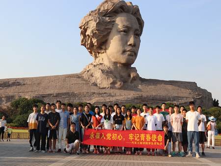 宣誓仪式在毛泽东雕像前进行。活动开始,所有预备党员胸口佩戴党徽,在领誓人谢国栋同志与监誓人姜苇峰同志的带领下,28名预备党员面向党旗,举起右拳,庄严宣誓。