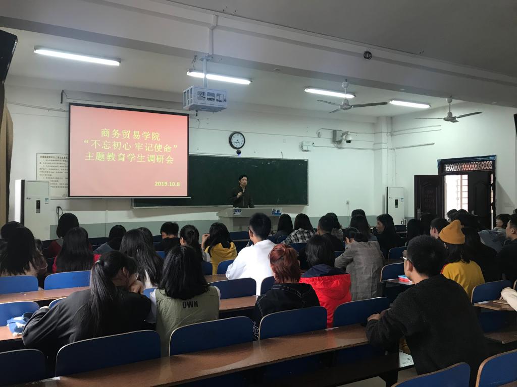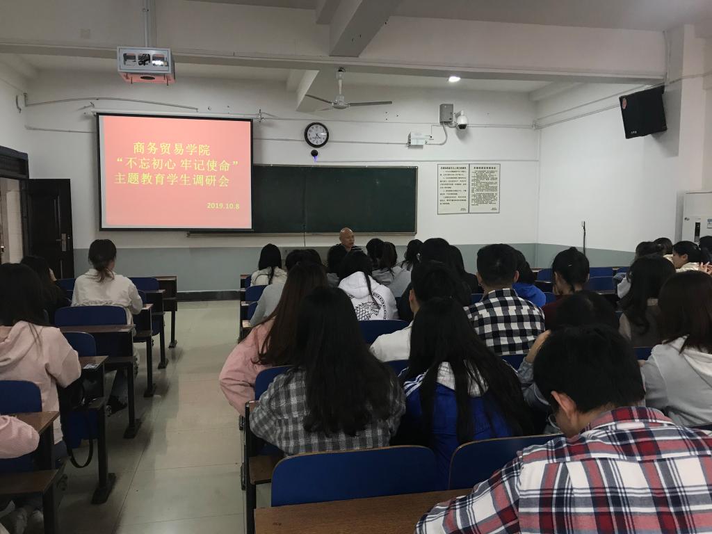 本网讯 10月8日,商务贸易学院在2212和2213教室组织开展“不忘初心,牢记使命”主题教育调查研究活动,全院20余名教师代表和80余名学生代表参加了本次活动。