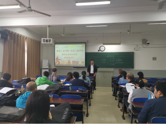 本网讯 10月15日下午,我校信息工程学院特邀湘安消防公益服务中心刘维教官为全院教职工作题为“高校消防安全知识”的专题讲座。讲座由学院院长杜飞明主持。信息工程学院全体教职工参加了本次讲座。