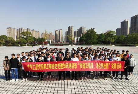 本网讯 10月29日下午,电气工程学院第五期党史党建培训班学员在新纪元广场集合,开展以“传递正能量,净化吾校园”为主题的实践活动,共有118名培训班成员参加本次活动。
