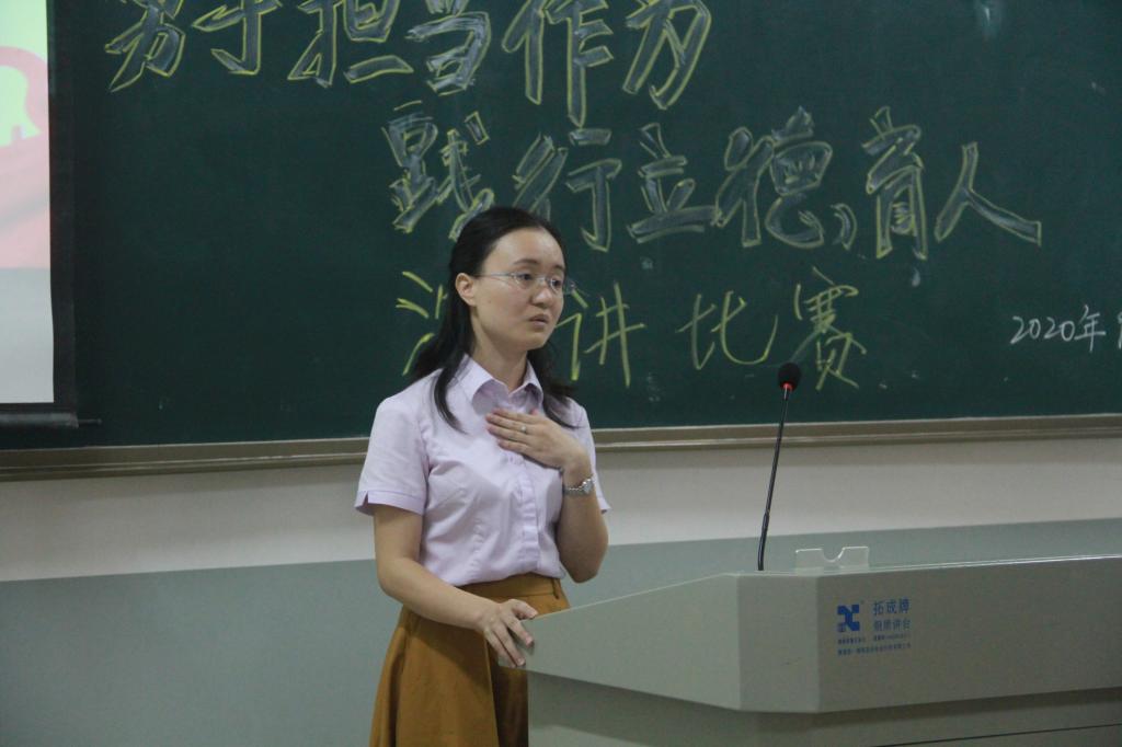 “作为教师,我们既是与学生比肩的伙伴,更是走在他们前面的榜样,只有践行立德树人的教育理念,培养勇于担当的奉献精神,才能真正成为大学生成长成才的引路人!”一等奖获得者易珺在演讲中如是说道,引起大家的共鸣。在活动过程中,各比赛选手多以发生在身边的育人小事为切入点,分享自己“勇于担当作为,践行立德树人”的感受、感想、感言。