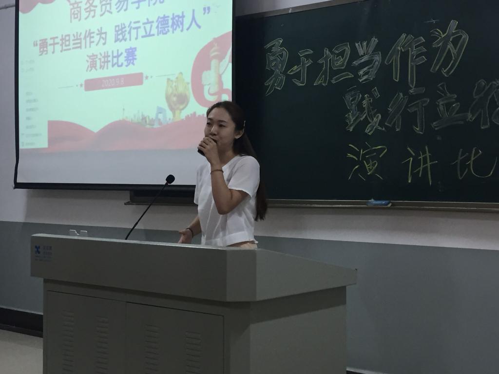 本网讯 9月8日下午,商务贸易学院开展“勇于担当作为,践行立德树人”演讲比赛活动。学校副校长成涛、全院教职工现场观赛。