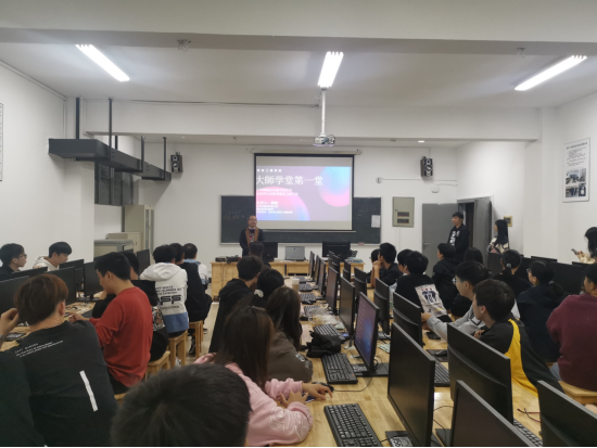 本网讯 10月15日晚,信息工程学院在五教5304举办“技能大师进学院系列活动之‘大师讲学堂’第一讲活动。本次大师讲学堂活动邀请了长沙巨浪网络科技有限公司动画教研组专家、高级游戏动画师熊彪担任主讲嘉宾。讲座由信息工程学院副院长颜浩龙主持,相关专业教师和100多位学生参加了本次讲座。本次活动由数媒教研室和实训教研室主办,动漫协会承办。